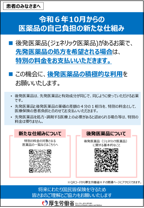 後発医薬品のある先発医薬品(長期収載品)の選定療養について